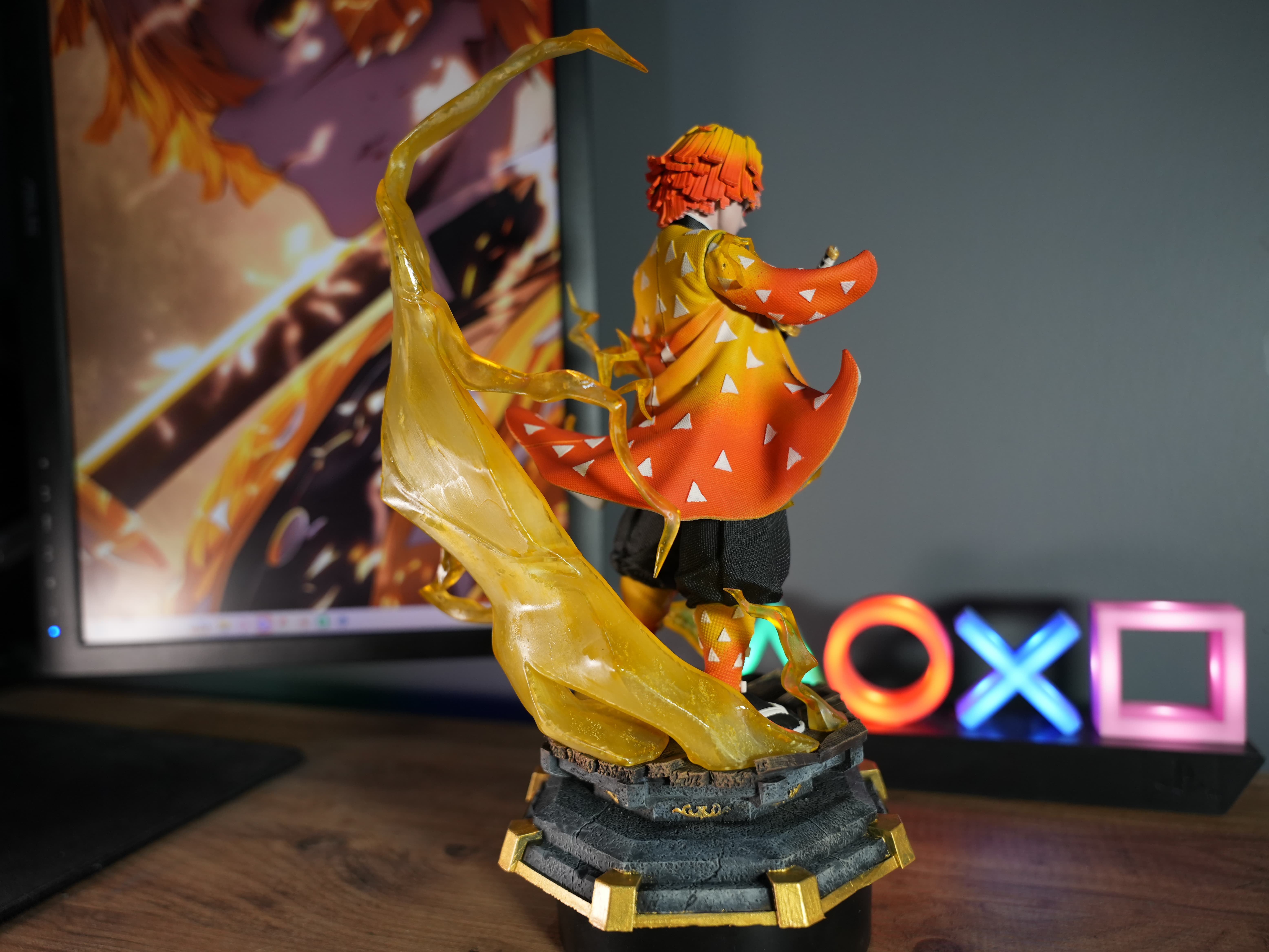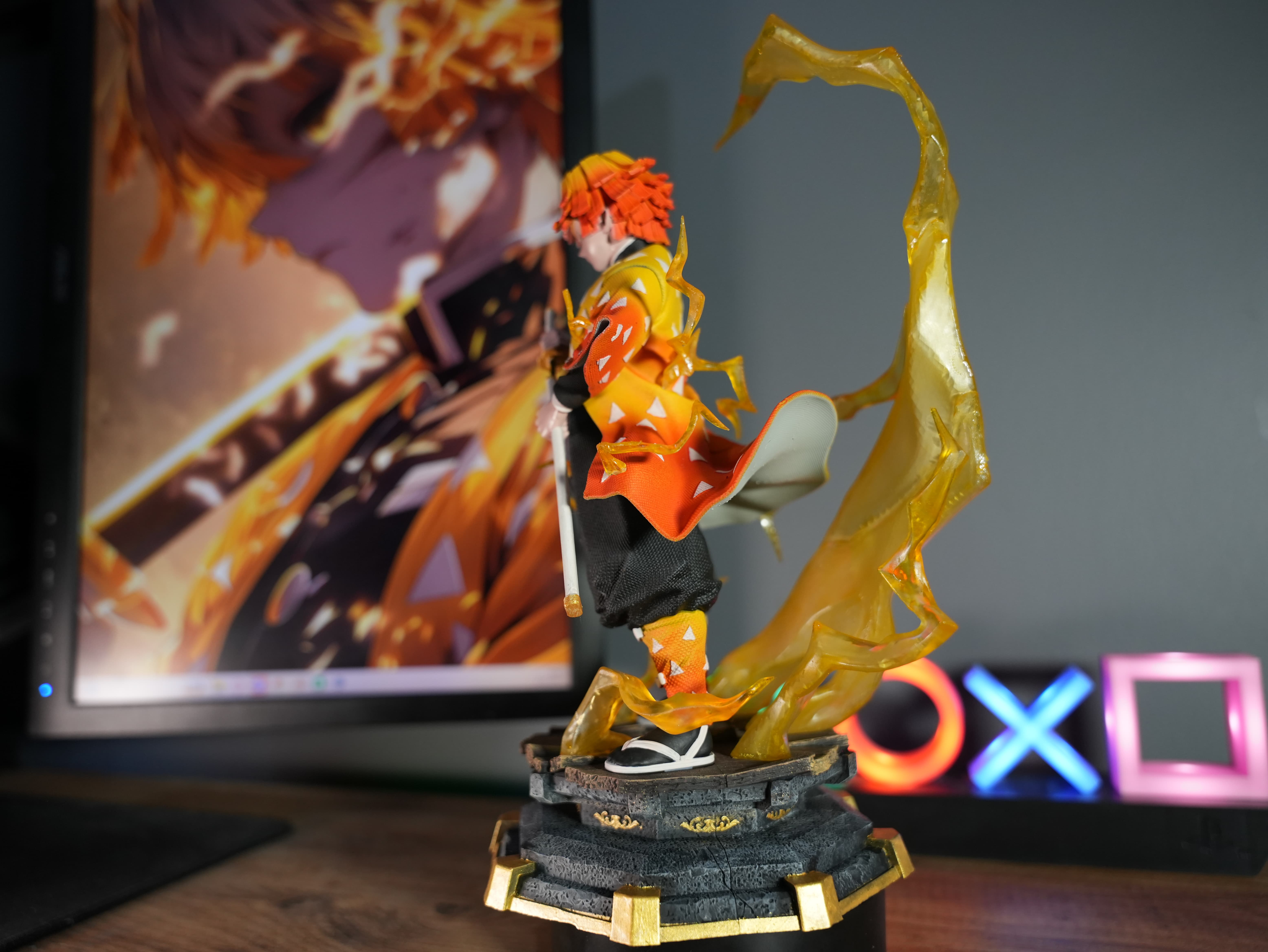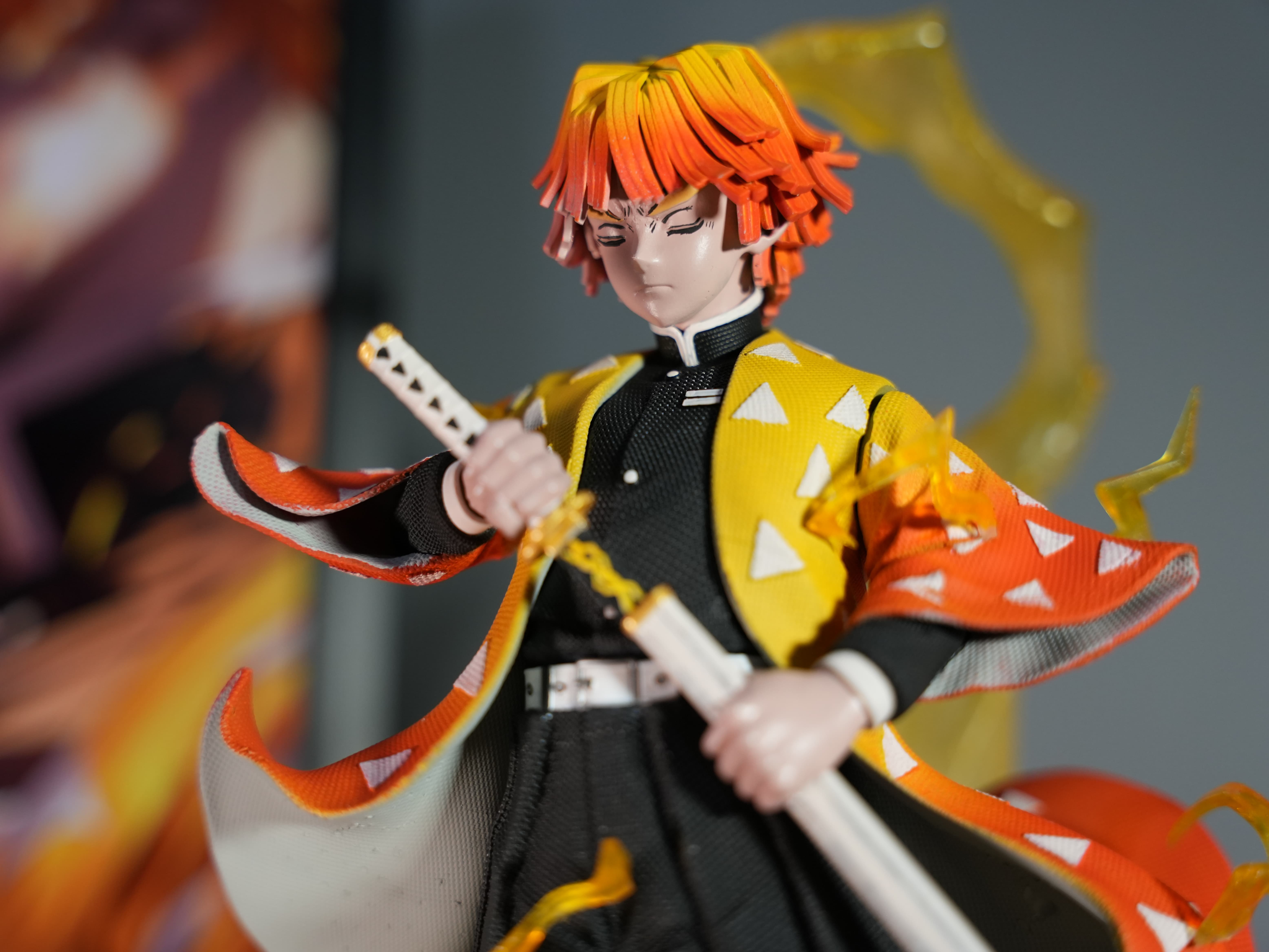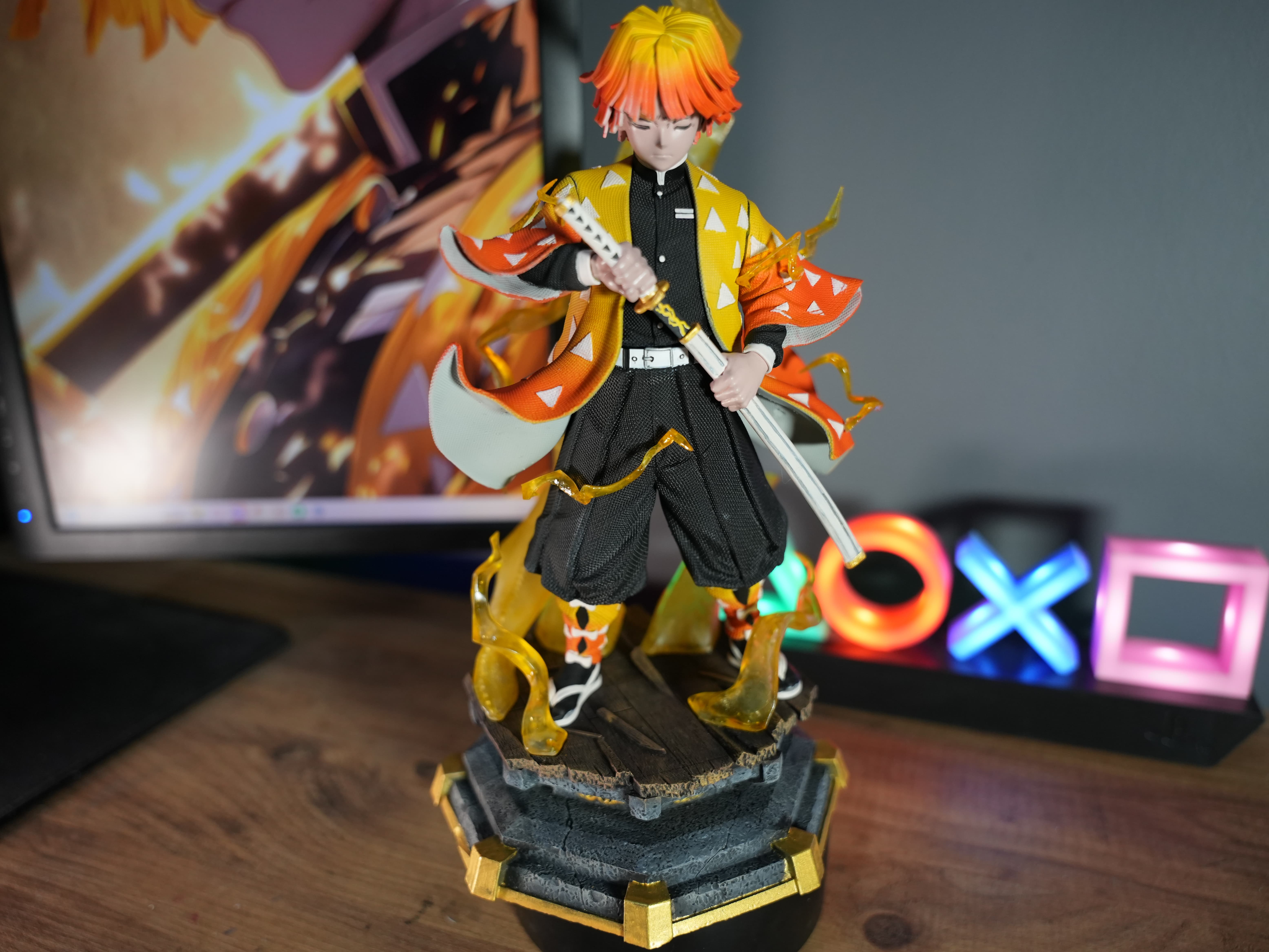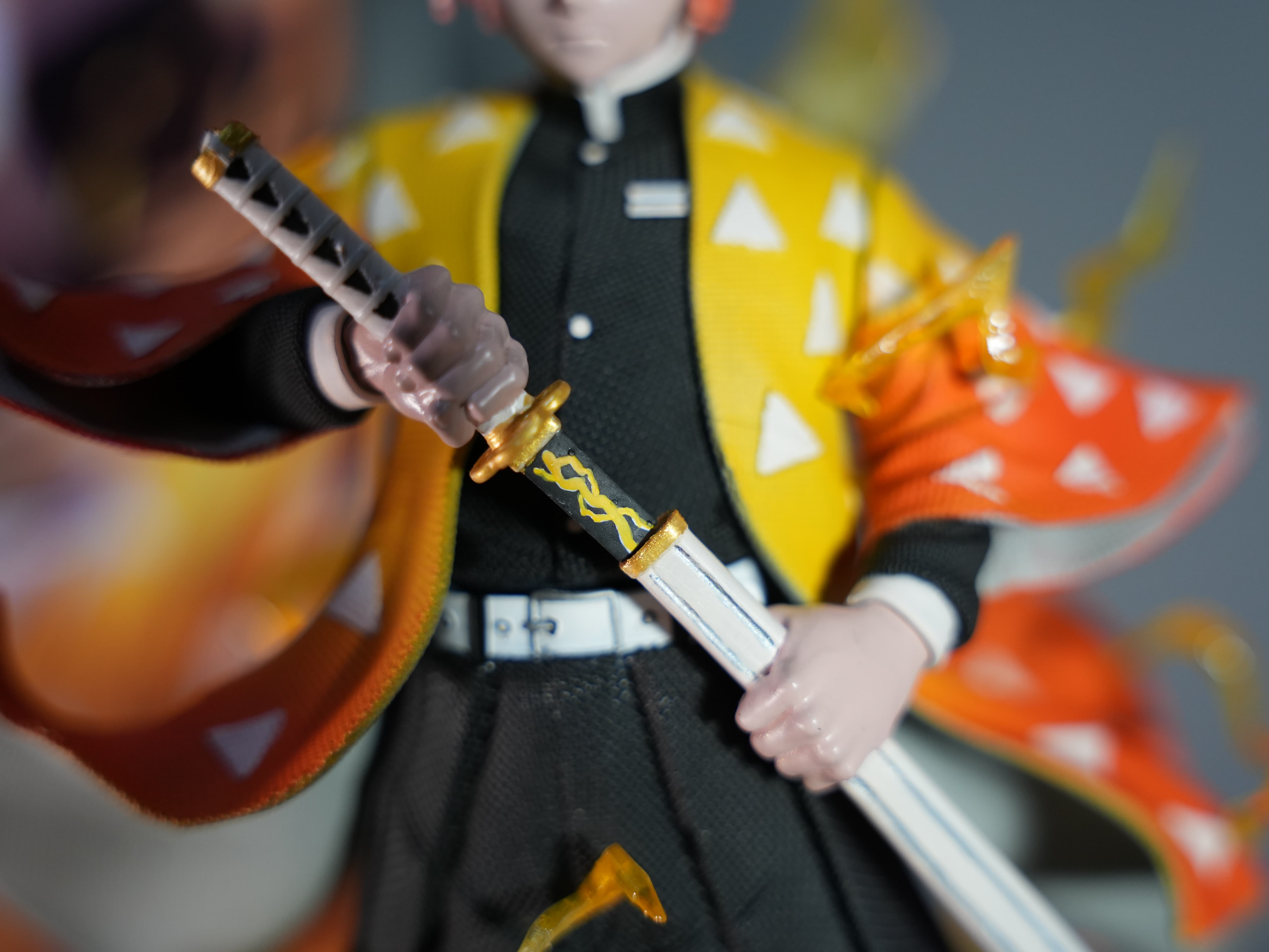 Bu figür, Demon Slayer evreninin sevilen karakterlerinden Zenitsu’dan esinlenilerek hazırlanmış özel yapım ve hayran çalışması bir koleksiyon ürünüdür.