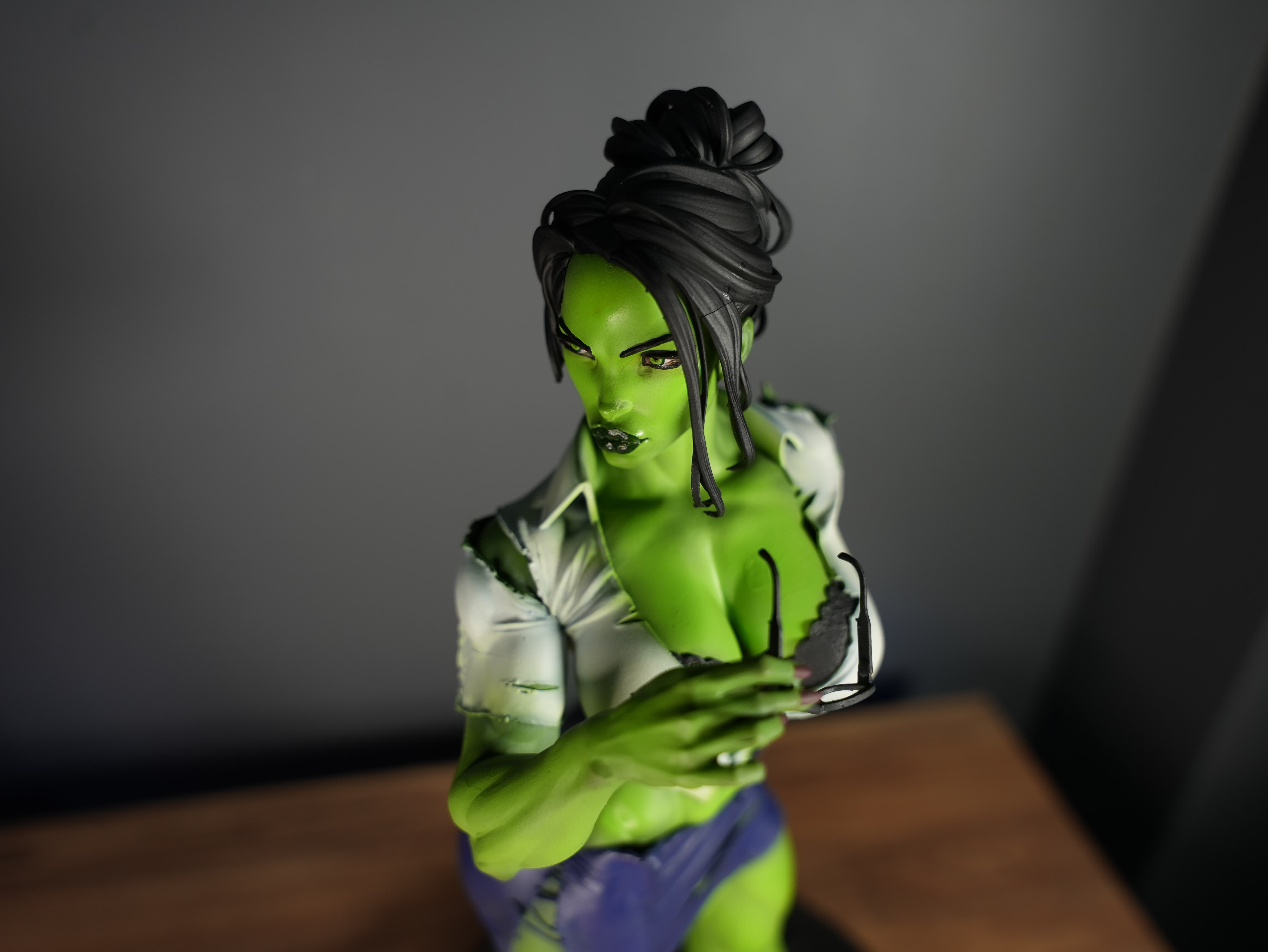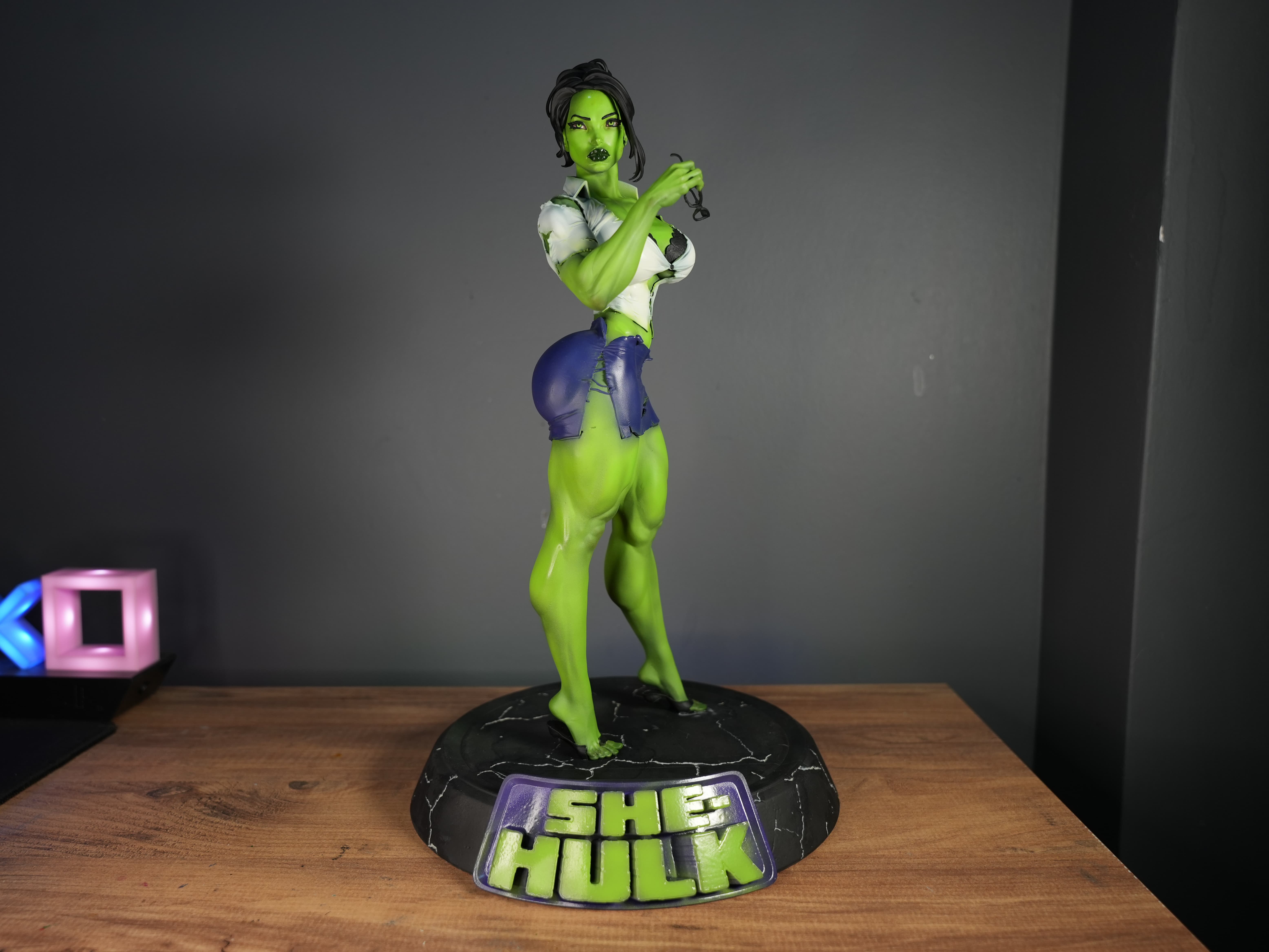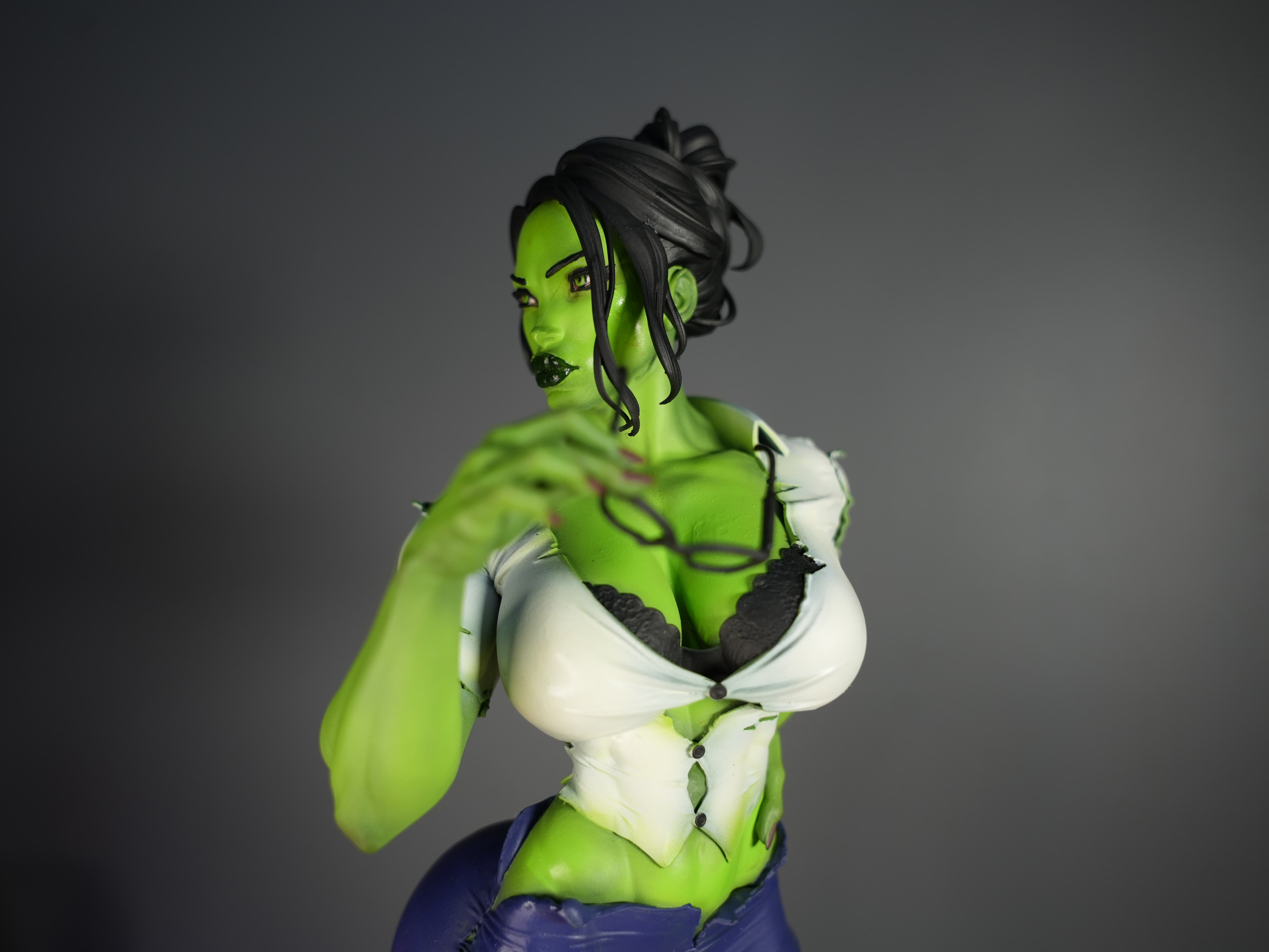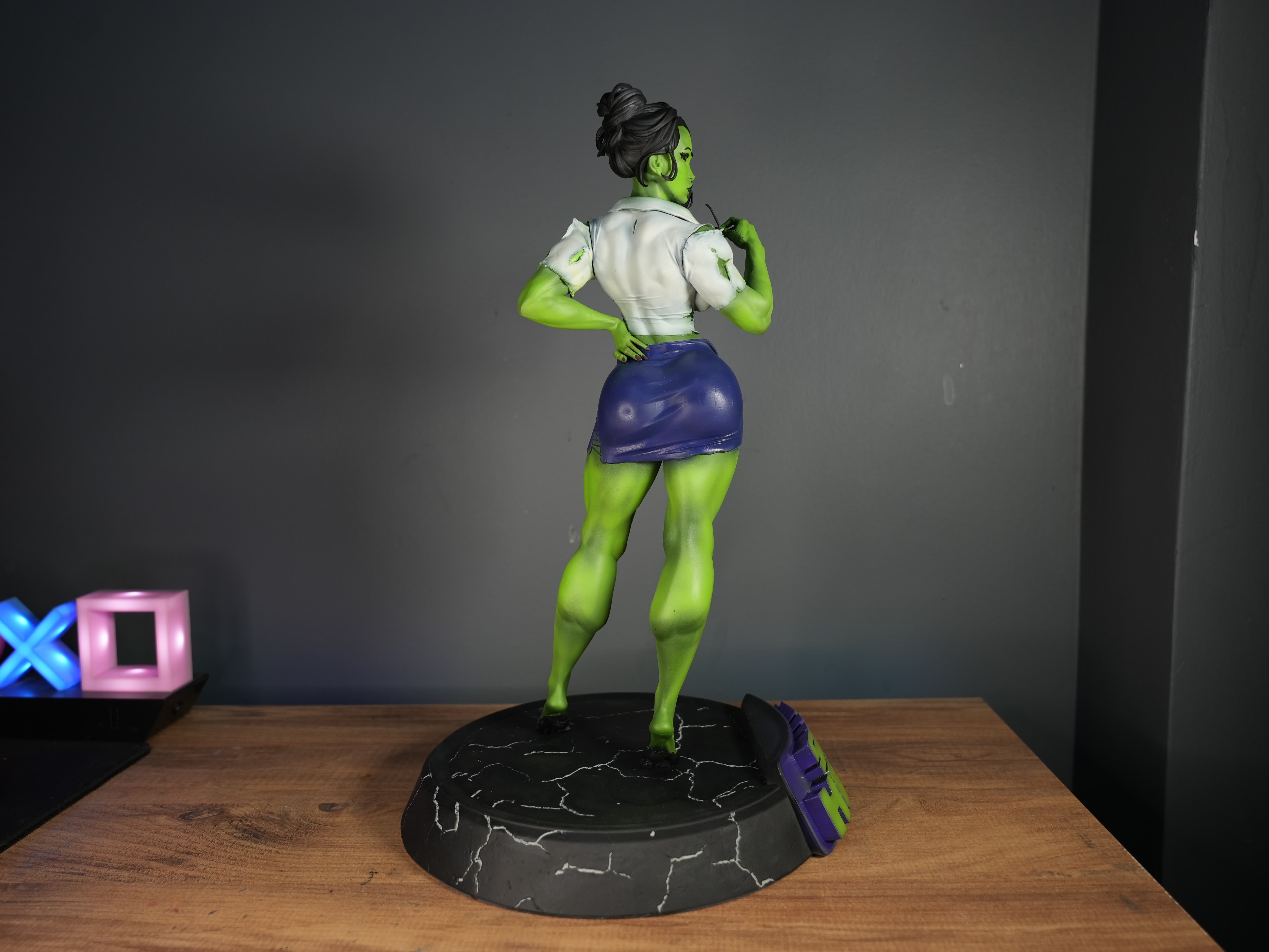 Bu figür, Marvel evreninin güçlü ve ikonik karakterlerinden She-Hulk’tan esinlenilerek hazırlanmış özel yapım ve hayran çalışması bir koleksiyon ürünüdür.